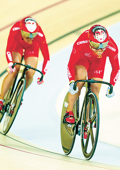 场地自行车女子团体竞速赛,宫金杰/钟天使表现强势,在资格赛中,先是以32秒305打破奥运会纪录的成绩晋级,而后又以31秒928的成绩打破了自己保持的世界纪录。决赛中,她们以32秒107的成绩领先俄罗斯队近0.3秒夺得冠军,实现中国自行车奥运金牌零的突破。