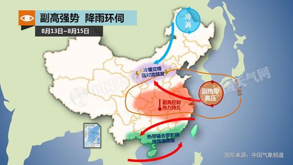 未来三天(14-16日),黄淮至长江中下游的高温天气仍将持续,长江流域的高温连续剧甚至还将继续上演一周,贯穿整个8月中旬。降水则是南北各自为阵,华北、内蒙古河套地区及东北地区东南部等地有较强降雨,华南、江南的部分地区则受热带扰动影响,迎来较强阵性降水。