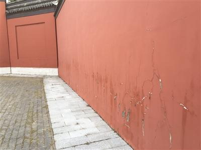 六合文庙出现墙体渗水。