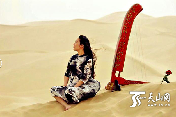 且末箜篌文化艺术代言人鲁璐弹奏箜篌。