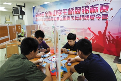 8月5日至9日,来自全国23个省市的109支代表队、760多名师生齐聚北京市第十二中学,参加了2016年全国中学生桥牌锦标赛。桥牌被称为“无声的战争”,在这项高雅、文明的智力运动中,学生们锻炼了逻辑思维和团队合作等多方面的能力,也在比赛中逐渐体会到运动的真谛。