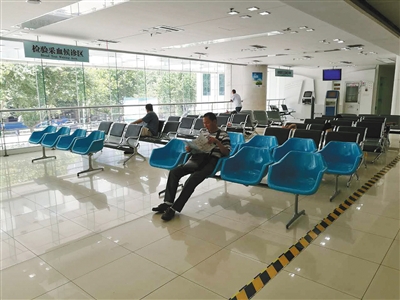 8月9日,镇江市第一人民医院,曾经的输液区变得冷清,被改为“采血区”。新京报记者 李丹丹 摄