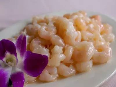 将虾仁放入碗内,加一点精盐,食用碱粉,用手抓搓一会儿后用清水浸泡,然后再用清水洗净,这样能使炒出的虾仁透明如水晶莹,爽嫩可口。