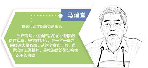 马建堂:当前,我国有效供给与有效需求不适应,中低端产品充斥市场,优质高端产品供给不足,个中原因很多,而工匠精神缺乏是重要原因之一。无论在国内还是国外,也无论规模大小,生产高端、优质产品的企业都能耐得住寂寞、守得住初心,在一丝一毫之间倾注大量心血,成功创造极品后依然安于本分,日夜精进,进而达到了品质日臻完美的境界。从这个意义上说,倡导培育工匠精神,是推进供给侧结构性改革的需要。