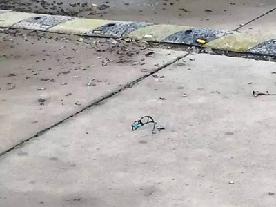校园中事发道路上,一把雨伞躺在地上,现场被封锁。家属供图