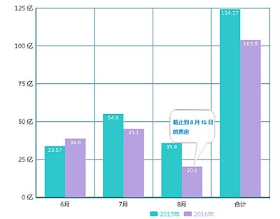 一向被看作全年内地票房“扛把子”的暑期档,今年的完成情况不太好。刚刚过去的7月,全国电影总票房共计45.1亿,比去年同期下降约18.2%,这是近五年来中国电影暑期档首次出现负增长。8月的成绩也并无亮眼之处,截止8月15日,全国票房仅为20.1亿元。