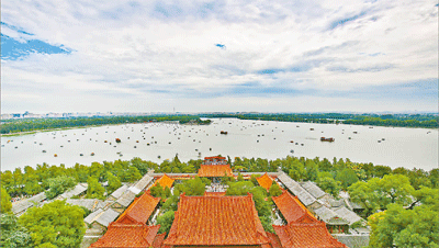 初秋时节的北京市颐和园碧波荡漾,美不胜收。8月15日,众多市民和游客纷至沓来,欣赏美景。陈晨摄/光明图片