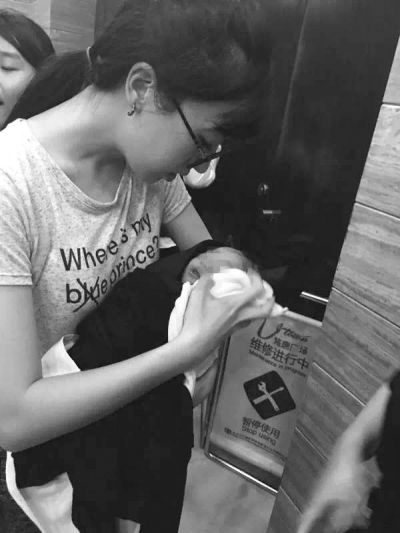 当晚9时许,正在跟朋友逛街的王子惠走到商场地下一层时,看到有人围在卫生间门口,进去发现,一名初生婴儿正悬在一名产妇的身下,“当时产妇就弓着身子站在厕间内,没人敢上前处理,情况挺危急的”。