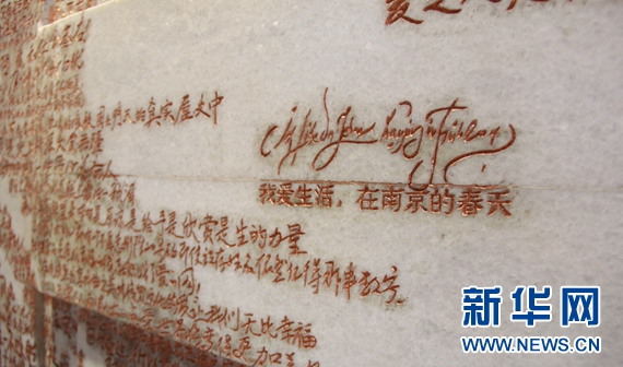 刻满字的“博爱墙”。 新华网 金佳绪 摄