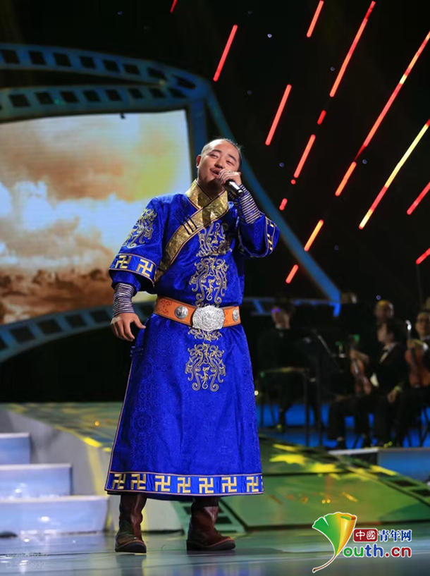 呼和牧人在《纪念中国共产党成立95周年电影音乐会》演唱民歌。本人供图