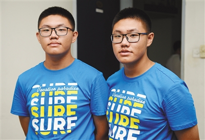 双胞胎兄弟贾仕赫(左)和贾仕喆同时考上清华大学。