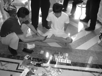 大图:警方收网抓获嫌疑人。小图:民警查获的银行卡等作案工具。深圳警方供图