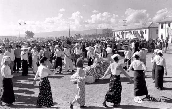 1956年12月16日,中缅两国边境人民在云南省德宏傣族景颇族自治州芒市举行联欢大会。 新华社记者 王传国 摄