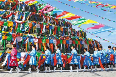 图为牧民正在进行祭祀活动。