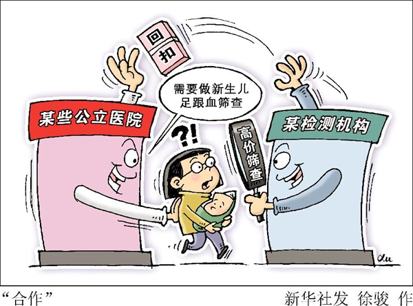 我国规定新生儿要进行先天性甲状腺功能低下和苯丙酮尿症两项足跟血筛查,属于免费项目。“新华视点”记者调查发现,在北京、辽宁等地部分公立医院,一项收费近千元的新生儿遗传代谢病自费足跟血筛查,“搭车”国家免费项目,经“捆绑”推销或“先斩后奏”,几乎成为新生儿家长的“必选”,其背后隐藏着一条运作多年的灰色利益链。