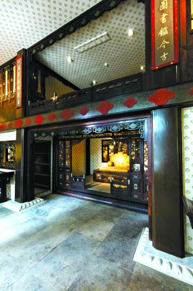 楼阁东南西北均设门。跟着王时伟从北门进入楼内,绕着一层只转了一圈,记者就迷路了。只见整层被分割成大大小小的方形,彼此联通,走几步就要跨道门槛。而屋内,紫檀嵌玉的隔罩、双面绣的窗子、点镶螺雕漆挂檐板、沉香嵌玉花窗……虽然已经过200多年风霜洗礼,但清尘之下仍然是难以掩饰的浮华与精致。