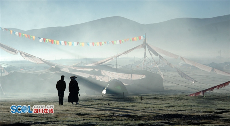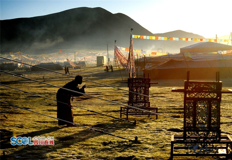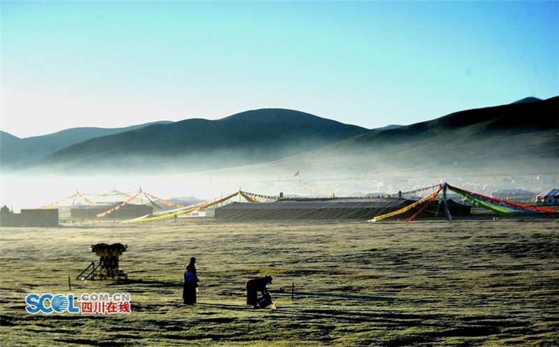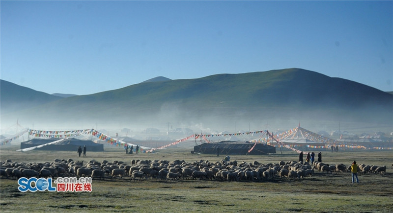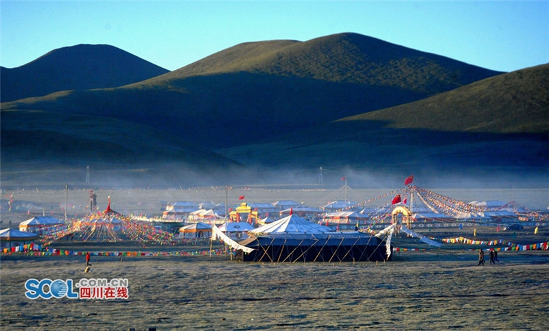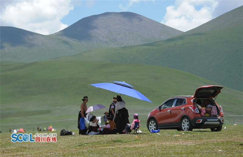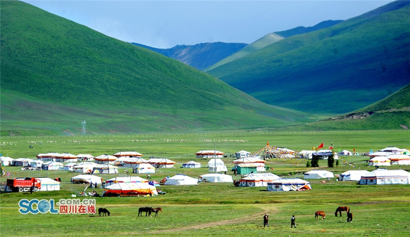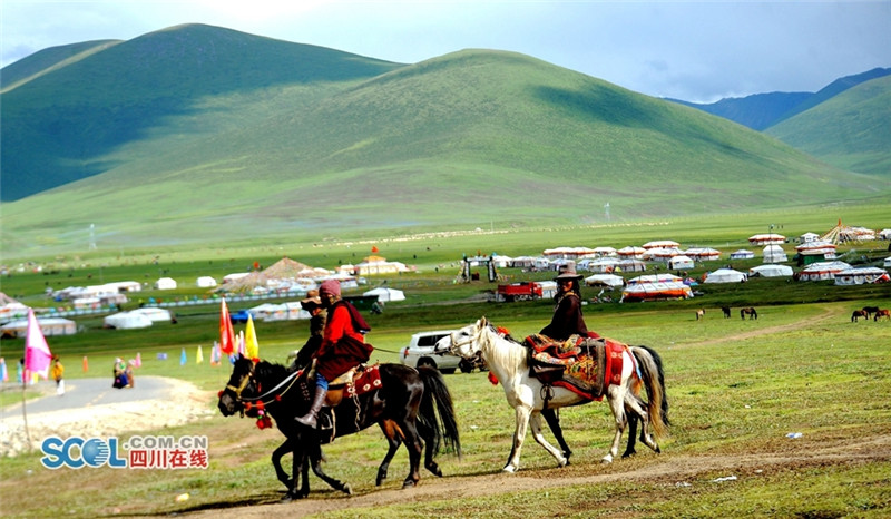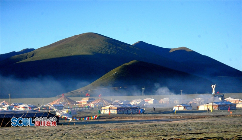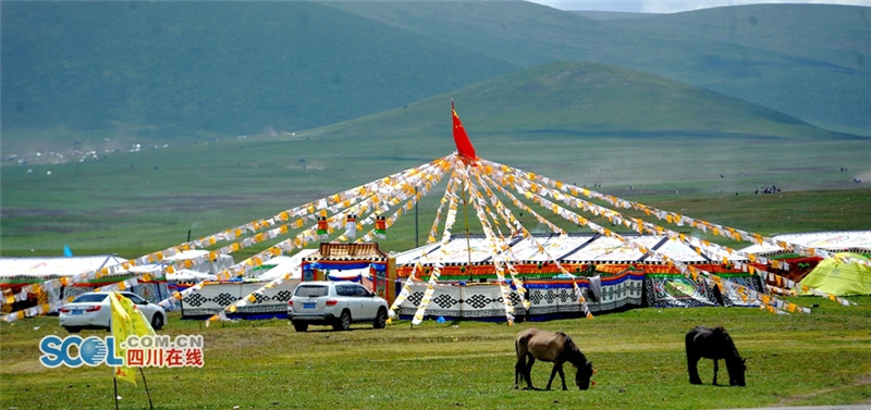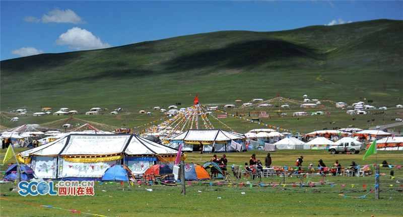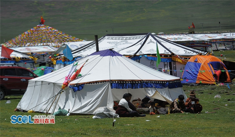 进入夏季,甘孜州各县乡镇牧民们纷纷来到草原上搭建起帐篷开始“耍坝子”,也吸引了来自四面八方游客共同感受草原帐篷风光,牧民们通过春天的耕耘,在每年7月中旬到8月初在草原“耍坝子”迎接秋天丰收的到来,牧民身着节日盛装、满载丰收的喜悦,开展丰富的民间歌舞等活动,好一派藏族牧区风情。(记者 衡昌辉摄)