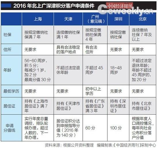 北上广深津积分落户出台:上海重学历 北京重贡献