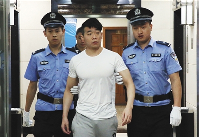 5月19日,二中院,犯罪嫌疑人乔宇被法警带着走向法庭。近日,二中院作出判决,仍以诈骗罪判处其有期徒刑11年。新京报记者 尹亚飞 摄