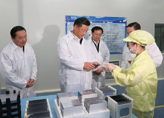 23日下午,习近平来到国家电投太阳能电力有限公司西宁分公司,考察青海省依托自然资源优势发展清洁能源、推进光伏产业链发展情况。习近平走进太阳能电池生产车间,拿起一块太阳能电池板仔细察看,了解电池板制造工艺、工作原理。习近平强调,青海要抓住人才、技术、资金等关键环节,发展好光伏一条龙全产业链,让清洁能源更好造福人民。 (来源: 新华社 记者:霍小光)