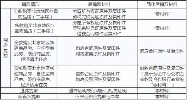 国管住房公积金提取材料简化情况对比表(以北京为例)