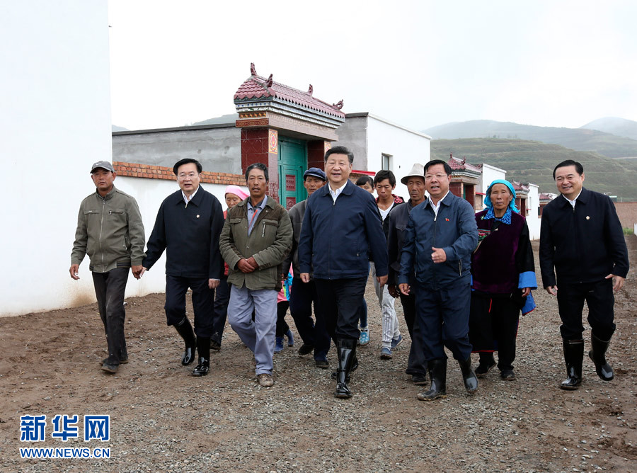 这是8月23日上午,习近平在海东市互助土族自治县五十镇班彦村新村建设工地考察易地扶贫搬迁情况。 新华社记者 庞兴雷 摄