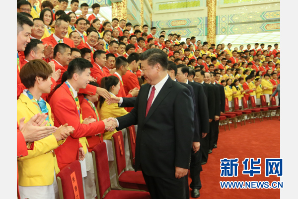 习近平强调,我国体育健儿在里约奥运会上的出色表现,生动诠释了奥林匹克精神和中华体育精神,为祖国争了光,为民族争了气,为奥运增了辉,为人生添了彩,激发了全国人民的爱国热情和全世界中华儿女的民族自豪感,增强了中华民族的凝聚力、向心力、自信心,是中国精神的一个重要体现。
