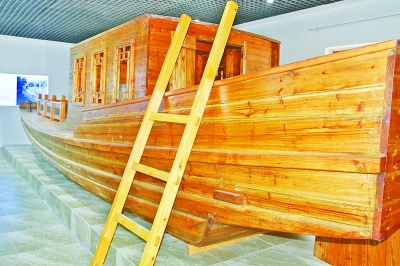 运河记忆博物馆内展出的漕运船。资料图片