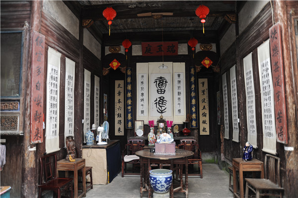 瑞玉庭建于清咸丰年间,堂内挂有一副错字联“快乐每从辛苦得,便宜多自吃亏来”。“快乐每从辛苦得”“快”上少了一竖,“辛”字上多加一横;“便宜多自吃亏来”,“多”字少一点,“亏”字多一点。寓意“多一份辛苦,多一份收获,多吃一点小亏,可赚大便宜”,告诫后人做人要勤奋厚道。