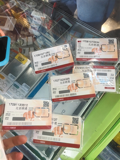 昨日,北京街头手机卡摊位可轻松买到虚拟号段电话卡。新京报记者 李明 摄
