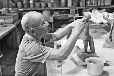 8月25日,中国磁州窑文化艺术节暨河北省陶瓷技艺大赛在河北省邯郸市峰峰矿区千年古镇彭城举行。本次活动由中国陶瓷工业协会、河北省贸促会、河北省陶瓷玻璃行业协会、邯郸市人民政府共同主办,以“弘扬磁州文化艺术,推动峰峰陶瓷产业和文化旅游产业快速发展”为主题,近百位陶艺大师的近千件作品参展参赛瓷品。2006年磁州窑被国务院列入国家级非物质文化遗产保护名录,近年来磁州窑文化产业集聚入驻峰峰矿区,手工作坊及工作室达100余家,产品远销日本、泰国、越南等70个国家和地区。图为磁州窑陶艺大师侯总华在捏制沙家浜人物。 高起银王希田摄