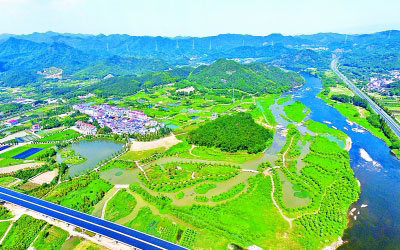 8月28日,空中俯瞰浙江省武义江履三、坛头湿地公园,树草翠绿,满眼生机。近年来,武义县把武义江履三、坛头段列为生态湿地公园重点建设项目,实行连片联合开发建设。目前该湿地公园初步建成。