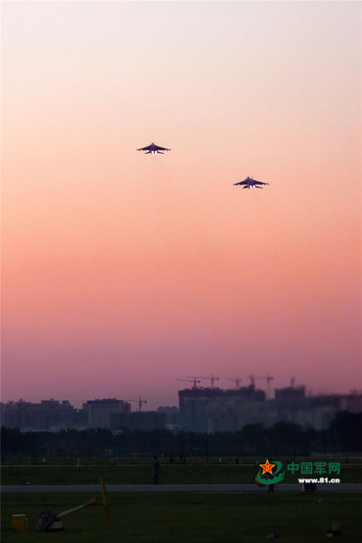 暮色中双机起飞进行夜间轰炸训练。杨盼摄影