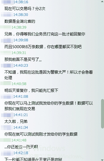 而在记者的探访中,个人信息买卖的价格也并非“一成不变”。随着徐玉玉事件的升温,“风声越来越紧”,价格也发生了变化。在记者试图购买个人信息时,对方也透露这方面信息。