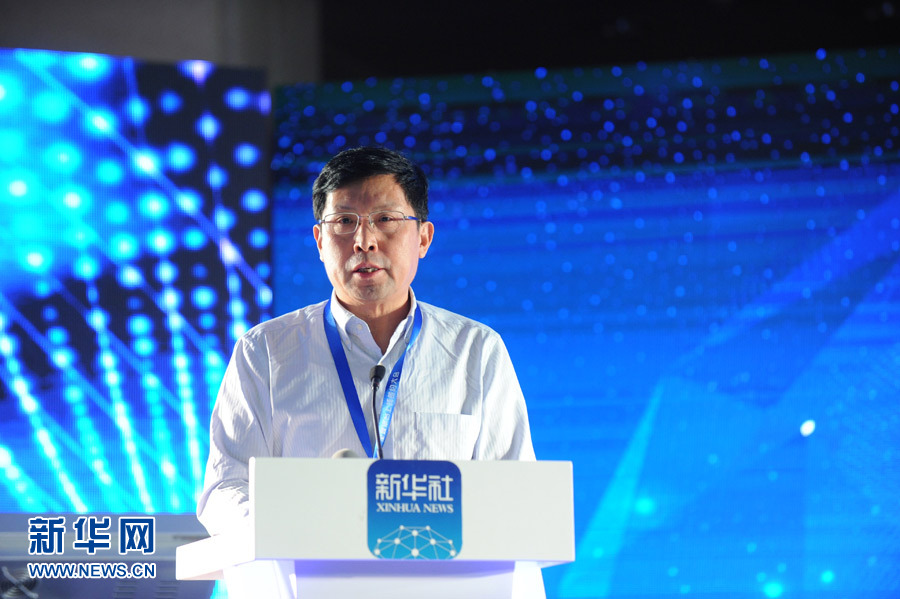 8月30日,全媒平台上线暨签约大会在北京举行。这是广州日报报业集团管委会党委书记、广州日报社社长顾涧清致辞。 新华社记者沈伯韩摄