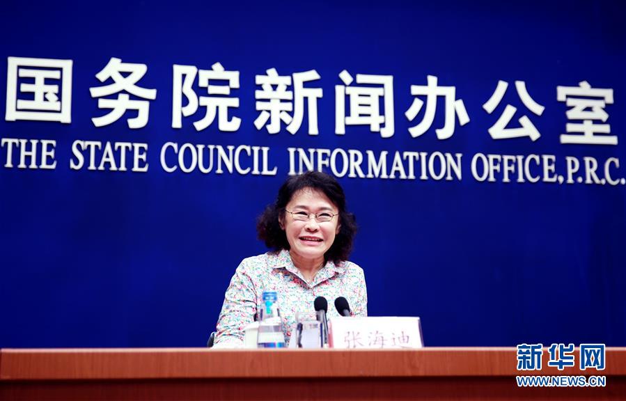 8月31日,中国残联主席张海迪在发布会上介绍情况。当日,国务院新闻办公室举行新闻发布会介绍中国残疾人事业“十二五”发展情况,解读《“十三五”加快残疾人小康进程规划纲要》。新华社记者潘旭 摄