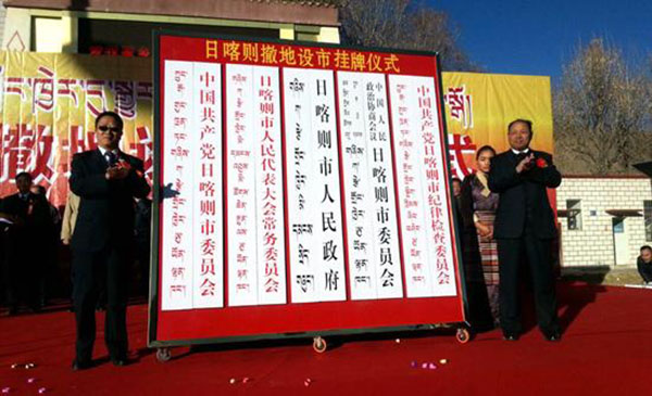 2014年12月18日,西藏日喀则市举行“撤地设市”挂牌仪式。