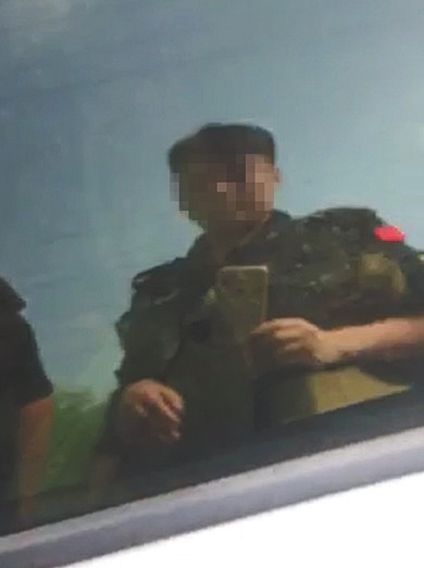 拍摄者制服上有“特警”字样。视频截图