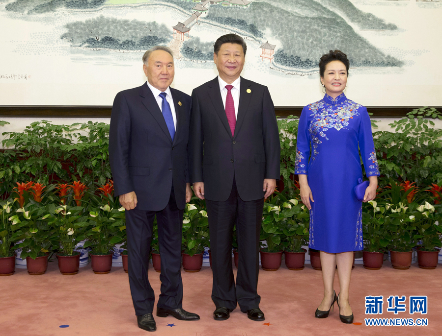 9月4日,国家主席习近平和夫人彭丽媛在杭州西子宾馆举行宴会,欢迎出席二十国集团领导人杭州峰会的外方代表团团长及所有嘉宾。这是习近平和彭丽媛迎候哈萨克斯坦总统纳扎尔巴耶夫。 新华社记者丁林摄