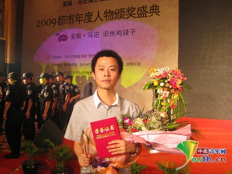 张阳参加2009年都市年度人物颁奖盛典。本人供图