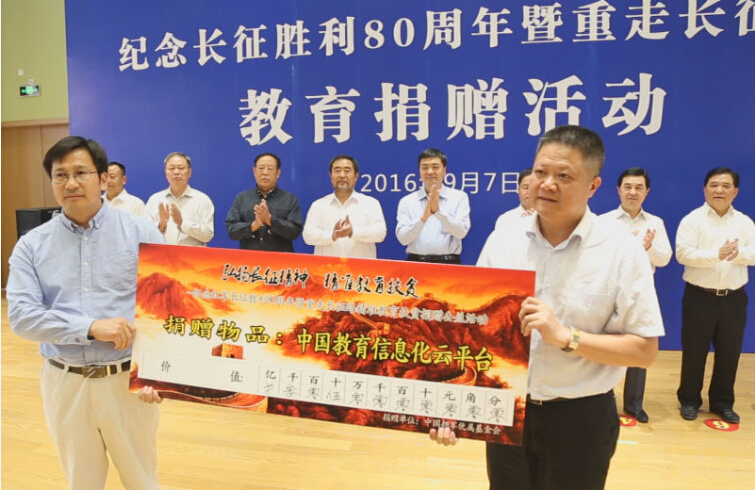 9月7日,“弘扬长征精神精准教育扶贫——纪念红军长征胜利80周年暨重走长征路教育扶贫捐赠公益活动”捐赠仪式在贵州省贵阳市举行,活动组委会向贵阳市教育局捐赠了中国教育信息化云平台和星品汇掌上学堂。