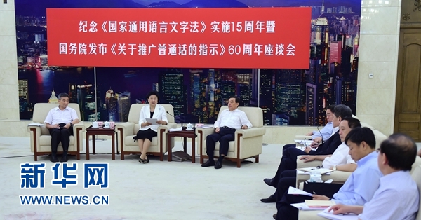 刘延东在纪念《国家通用语言文字法》实施15周年暨国务院发布《关于推广普通话的指示》60周年座谈会上强调