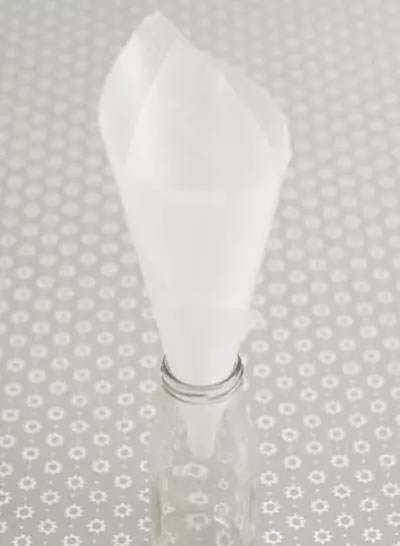▼过滤的时候可以讲油纸卷成漏斗状,把创可贴中间的有气孔的敷料放在中间用来过滤水中的杂质。