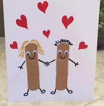 ▼将创可贴贴在自制贺卡上做装饰,让没有美术功底人也能轻松做出别出心裁的贺卡。