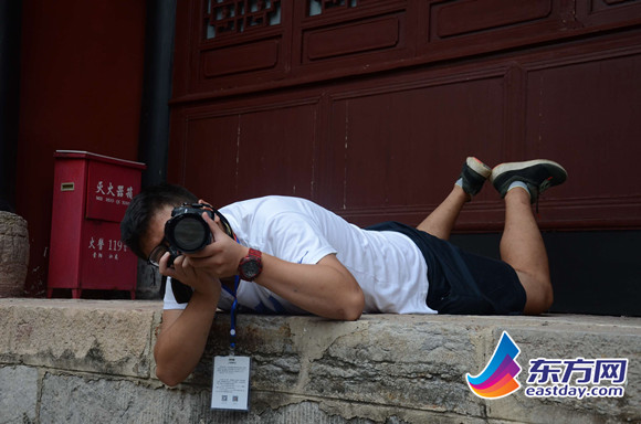 张琮脯趴在地上取景