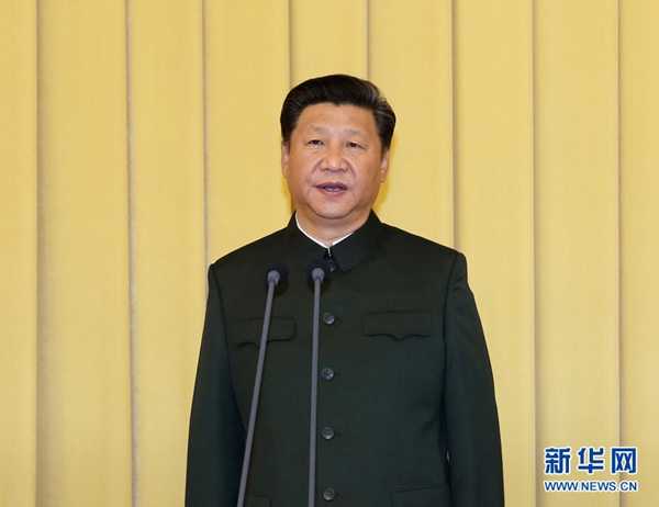 9月13日,中央军委联勤保障部队成立大会在北京八一大楼隆重举行。中共中央总书记、国家主席、中央军委主席习近平向武汉联勤保障基地和无锡、桂林、西宁、沈阳、郑州联勤保障中心授予军旗并致训词。新华社记者李刚摄