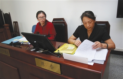 昨日,职业打假人王海的代理律师坐在原告席上,称王海所购买的冬虫夏草含片涉嫌虚假宣传,要求厂家退货并索赔15万余元。新京报记者 王贵彬 摄