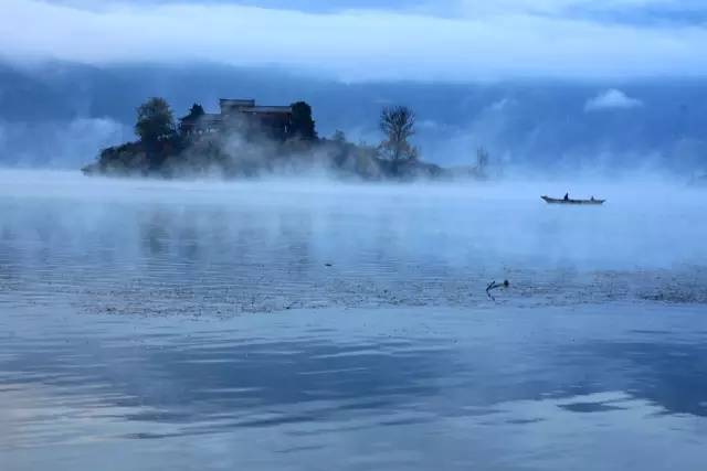 摩梭少女的风姿,独木轻舟的典雅,此起彼伏的渔歌,这湖上三绝再加上中秋一轮倒映湖中的明月,这种美好,想象便知。闲情信步,临风听暮蝉。眼前横卧的泸沽湖真的像极了天地间的一颗眼泪。直逢十五,倾泄的月光让这颗女儿国的泪珠闪烁着凛冽凄丽。揽了裙依在湖畔的船头,将自己溶入了这一片宁静,“江畔何时初照月?江月何年初照人”。
