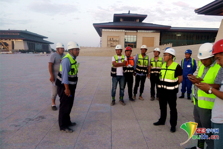 在卢海全看来,对项目细节的把控决定了工程的整体质量。幕墙施工中,石材的平整度是施工质量的一个重要指标。会展中心1、2、3号楼的台阶基座是营造汉唐风韵的重要元素,但它的平整度在阳光照射下很难测量。为此,卢海全晚上亲自带队,打着手电筒一个一个检查,发现问题立即要求班组整改。