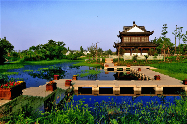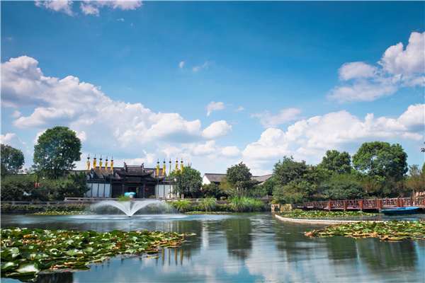 西溪洪园入口往东,走上石桥,放眼四望,屋舍楼台、粉墙黛瓦、平台水榭、石桥河埠、荻花草木、溪流泽地……一幅极具美感和韵味的园林立体画卷便展现在眼前,深远、空旷、幽静,充满神韵,既有别于完全原生态的湿地景观,又有别于传统江南园林。不一样的洪园!